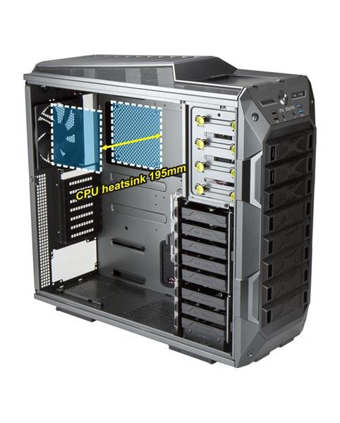 Tak abyste si mohli využít maximální výkon svého počítače, lze dovnitř skříně zakomponovat dvě jednotky vodního chlazení, a to do vrchní části až do délky 360 mm, a spodní částí až do délky 240 mm. Pro optimální cirkulaci vzduchu uvnitř skříně lze umístit až 10 větráků (včetně 4 předinstalovaných).