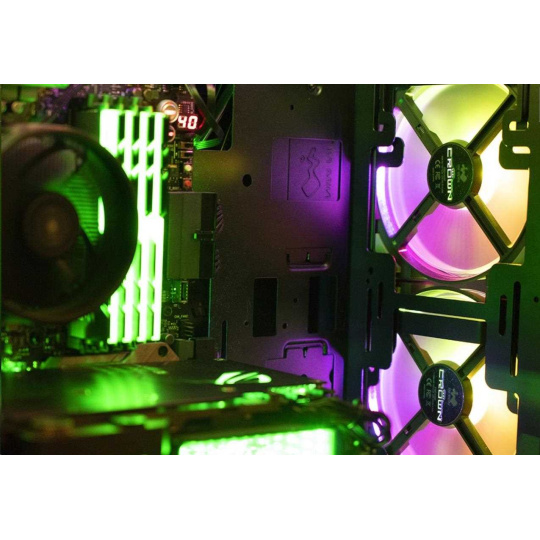 Connect the included addressable cable to the motherboard’s addressable header. The CROWN AC140’s radiant lighting effect can be beautifully and easily demonstrated with a compatible motherboard software.