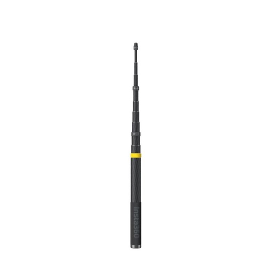 Prodloužená selfie tyč pro akční kamery Insta360 X4, X3, X2. Lze ji nastavit až do 300 cm. Kamery dokážou vymazat tyč se záběru, díky tomu lze dosáhnout pohledu z dronu. Selfie tyč je vyrobena z odolného karbonu, její váha je pouhých 365g. Ve složeném stavu je velká pouhých 36 cm, skládá se z 10 teleskopických sekcí..