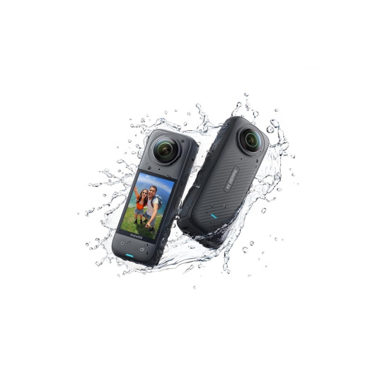 Akční 360° kamera Insta360 X4 se snímačem 1/2''. Rozlišení 360° videa je 8K / 30fps, při 4K až 100 fps. Foto rozlišení až 72Mpx. Kvalitní robustní konstrukce, velký dotykový 2,5“ displej, vodotěsná je do 10 m. Účinná stabilizace FlowState s 6-osým gyroskopem. Nová baterie s velkou kapacitou 2290 mAh. Ovládání gesty, hlasové ovládání 2.0. Video módy Video, Active HDR, Timelapse, TimeShift, Bullet Time, Loop Recording, Pre-recording. Rozměr kamery: 46 x 123,6 x 37,6mm