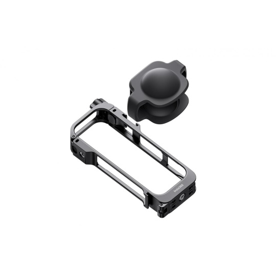 Lehký kovový rámeček pro příslušenství pro kameru Insta360 X5 poskytuje plnou ochranu kamery. Disponuje rychloupínacím bodem, dvěma držáky na příslušenství a závity 1/4". Součástí je kvalitné ochrana mikrofonu pro čistý zvuk i při větru..