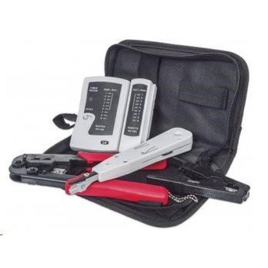 Intellinet 4-Piece Network Tool Kit, sada nářadí: cable tester, krimpovací kleště, LSA narážecí nástroj, stripovač
