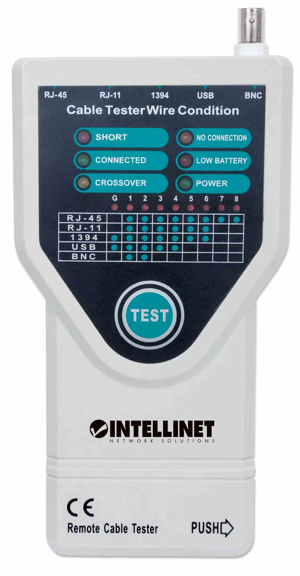 Intellinet Cable Tester, 5-in-1, RJ45, RJ11, USB, Firewire, BNC