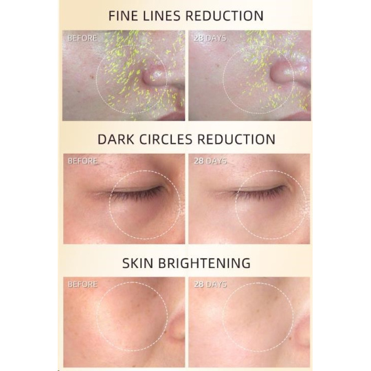 - Klinicky prokázaná redukce vrásek kolem očí o 24,56% a tmavých kruhů o 29,41% za 28 dní.