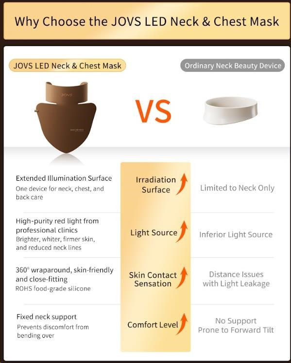 Péče o pleť nekončí u obličeje. Objevte profesionální ošetření pro často opomíjené partie a dopřejte si luxus, který vaše pokožka na krku, v dekoltu a na zádech pocítí i uvidí. Představujeme vám světelnou masku JOVS, inovativní řešení od prémiové značky, která přináší technologie z estetických klinik přímo k vám domů. Rozlučte se s nedokonalostmi a odhalte mladistvější a zářivější pokožku bez nutnosti drahých a časově náročných procedur v salonech.