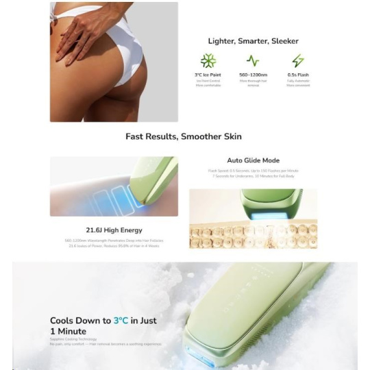 - Revoluční chlazení na 10 °C: Pokročilá chladicí technologie zaručuje naprosto bezbolestné a komfortní ošetření bez pálení a podráždění.