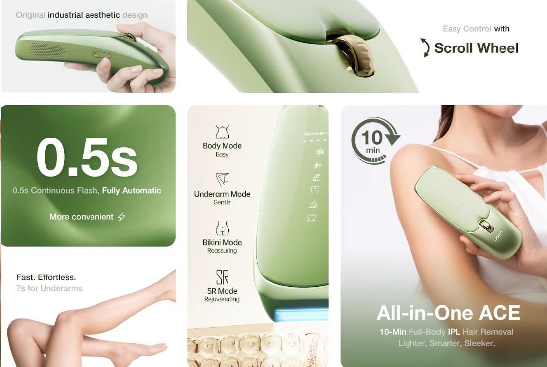 JOVS Scroll mění pravidla hry díky své impozantní energii 21 Joulů a extrémně rychlým zábleskům v intervalu pouhých 0,2 sekundy. Tato kombinace síly a rychlosti znamená, že ošetření celého těla je otázkou několika minut, nikoli hodin. Přístroj navíc nabízí víc než jen odstranění chloupků; jeho druhý režim je zaměřen na vyhlazení a omlazení pokožky, čímž získáte komplexní péči v jediném kroku.
