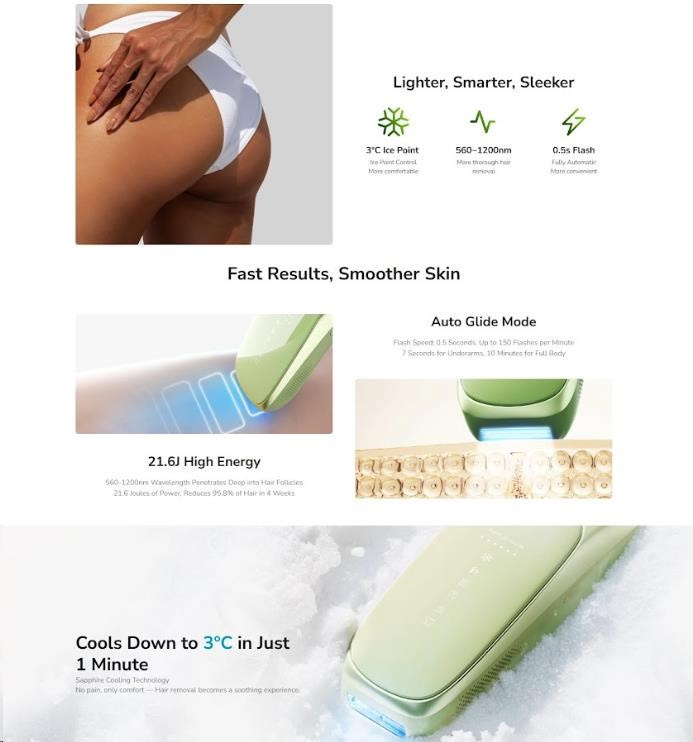 - Revoluční chlazení na 10 °C: Pokročilá chladicí technologie zaručuje naprosto bezbolestné a komfortní ošetření bez pálení a podráždění.
