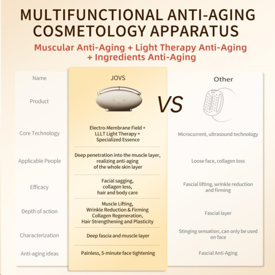 Většina kosmetických přístrojů se zaměřuje pouze na dermis, tedy na pokožku. Stárnutí však začíná hlouběji. Pokud svaly pod kůží ztratí svou pevnost, pokožka přijde o svou oporu a začne ochabovat a klesat – bez ohledu na to, kolik kolagenu obsahuje. JOVS Slimax jako jediný využívá technologii elektrických pulzních vln CET (Collagen Electrophoretic Techniques), která vysílá signály přímo do svalové vrstvy, stimuluje jejich aktivitu a obnovuje tak pevný základ celé tváře.