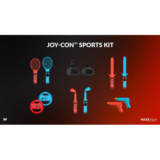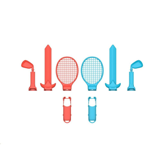 Obsah balení: 2 závodní volanty, 2 tenisové/badmintonové rakety, 2x 2v1 popruhy, 2 meče, 2 golfové hole, 2 pistole, 2x rukojetí Joy-Con, 2x adaptéry.