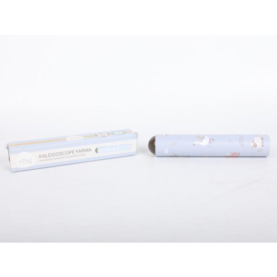 Kaleidoskop v neutrální pastelové barvě, s motivem zvířátek z farmy, v jejich skutečné, reálné podobě, je krásným dárkem pro zvídavé děti. Stačí krasohledem lehce otáčet a uspořádání sklíček a tedy i obrazce se budou měnit a přetvářet. Krasohled, optický přístroj, který pomocí sklíček a zrcadel vytváří kouzelné obrázky, rozvíjí u dětí fantazii a kreativitu..