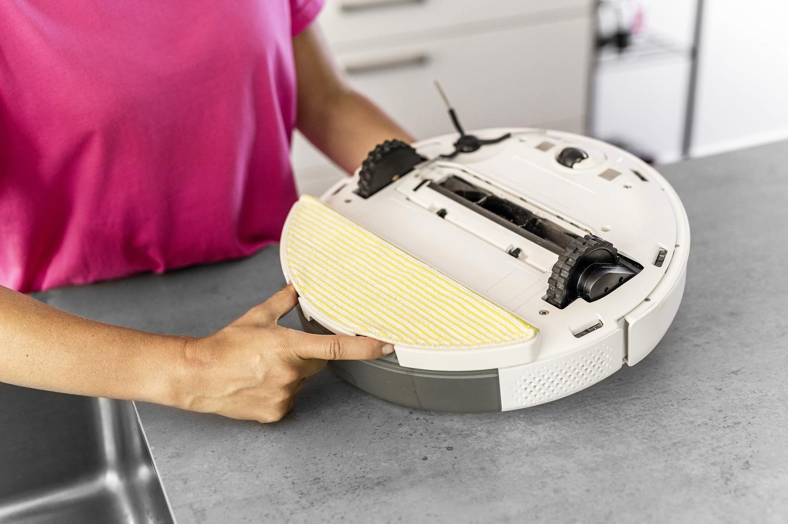 Pro ještě lepší výsledky úklidu může RCV 5 mopovat i na vlhko. V případě potřeby použijte stírací jednotku s utěrkou z mikrovlákna, naplňte nádržku na čerstvou vodu a můžete vyrazit. Úklidový robot RCV 5 lze používat buď pouze pro suché čištění, nebo pouze pro mokré vytírání, nebo s oběma možnostmi dohromady v kombinovaném režimu úklidu.