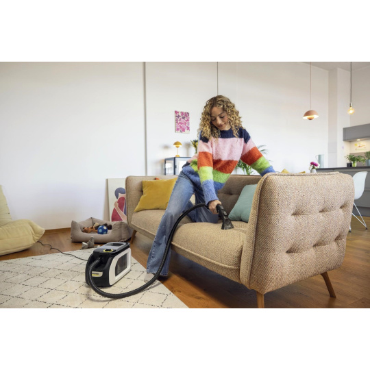 Hloubkové čištění a kompaktní design: tepovač SE 3 Compact Home je výkonné, energeticky úsporné řešení pro čištění textilních povrchů. Díky kompaktnímu designu se s přístrojem nejen snadno manipuluje, ale lze jej také uložit, aby se ušetřilo místo, což zajišťuje, že je rychle připraven k důkladnému a pohodlnému čištění do hloubky vláken i v případě nepředvídaného znečištění. Nečistoty z čalouněného nábytku, koberců, běhounů a malých koberců odstraní rychle a účinně. Dlouhá a flexibilní sací hadice se zabudovanou hadicí na čisticí prostředek zaručuje velké pohodlí a flexibilitu i na těžko přístupných místech. Dlouhý kabel zajišťuje maximální rozsah pohybu. Díky praktickým možnostem uložení na přístroji je veškeré příslušenství vždy po ruce. Systém nádržky 2 v 1 zajišťuje, že uživatelé nemusí přijít do styku se špínou. A jakmile je úklid dokončen, extrakční čistič s rozprašovačem ještě více zaujme funkcí hygienického čištění systému, která zabraňuje tvorbě bakterií a zápachu. Součástí balení je extrakční hubice na čalounění, extrakční hubice na štěrbiny a čisticí prostředek.