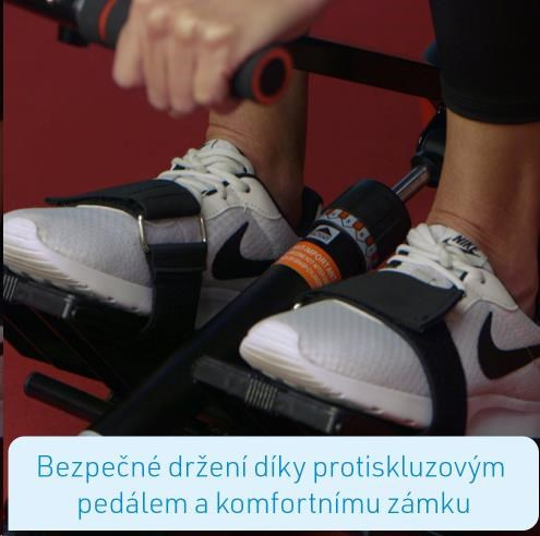 Ergonomicky tvarované sedadlo s kuličkovými ložisky ve spojení s protiskluzovými pedály včetně praktického pohodlného zámku zajišťuje bezpečné držení a vysokou úroveň pohodlí během celého tréninku. Extrémně robustní ocelová konstrukce s hliníkovou posuvnou lištou unese až 120 kg a je stále dostatečně lehká na to, abyste mohli cvičit kdekoliv.