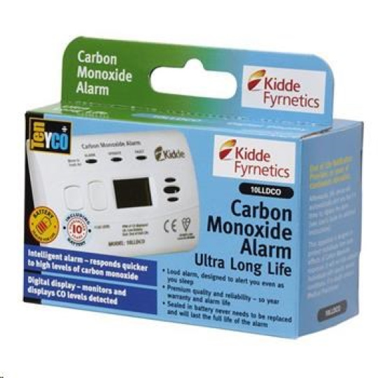 Hlásič úniku jedovatého plynu Kidde K10LLDCO je vybaven průmyslovým senzorem a integrovaným lithiovým napájecím zdrojem se životností a zárukou 10 let. Jeho provozní doba je tak o 40 % delší, než je tomu u většiny konvenčních alarmů CO běžně nabízených na našem trhu.