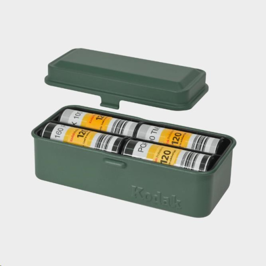 Pouzdro na filmy Kodak, vyrobené z oceli s vysokou pevností v tahu, dodá vašim filmům ochranu. Pouzdro je malé a přenosné, je ideální také pro všechny milovníky analogů. Udrží vaše role filmu suché a čisté, uspořádá až 8 rolí 120mm filmu naskládaných vodorovně nebo až 10 rolí 135mm filmu umístěných svisle - to vše na jednom místě. Ideální na každý den fotografování. Pouzdro na role je kompaktní a přenosné, ideální také pro všechny milovníky analogů. Udrží vaše role filmu suché a čisté a zároveň uspořádá vaše filmové příslušenství. Vnitřní pouzdro je vyrobeno z odolného plastu. Pomáhá oddělit vašich pět rolí filmu a úhledně je uskladní. Je odnímatelné a můžete si do něj bez omezení umístit, co jen chcete. Vhodné pro 120 nebo 135 filmů 8 rolí po 120 filmech nebo 10 rolí po 135 filmech, případně 4 role po 120 filmech a 5 rolí 35 mm současně Vyrobeno z oceli s vysokou pevností v tahu, která poskytuje vašim filmům silnou ochranu. Udržuje pořádek ve vašich filmových rolích.