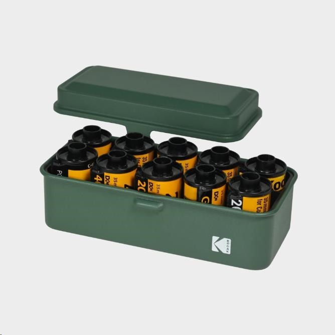 Pouzdro na filmy Kodak, vyrobené z oceli s vysokou pevností v tahu, dodá vašim filmům ochranu. Pouzdro je malé a přenosné, je ideální také pro všechny milovníky analogů. Udrží vaše role filmu suché a čisté, uspořádá až 8 rolí 120mm filmu naskládaných vodorovně nebo až 10 rolí 135mm filmu umístěných svisle - to vše na jednom místě. Ideální na každý den fotografování. Pouzdro na role je kompaktní a přenosné, ideální také pro všechny milovníky analogů. Udrží vaše role filmu suché a čisté a zároveň uspořádá vaše filmové příslušenství. Vnitřní pouzdro je vyrobeno z odolného plastu. Pomáhá oddělit vašich pět rolí filmu a úhledně je uskladní. Je odnímatelné a můžete si do něj bez omezení umístit, co jen chcete. Vhodné pro 120 nebo 135 filmů 8 rolí po 120 filmech nebo 10 rolí po 135 filmech, případně 4 role po 120 filmech a 5 rolí 35 mm současně Vyrobeno z oceli s vysokou pevností v tahu, která poskytuje vašim filmům silnou ochranu. Udržuje pořádek ve vašich filmových rolích.