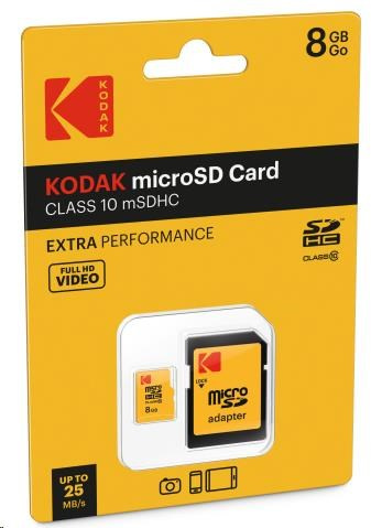 Kodak paměťová microSD karta 8GB Class10 w/adapter Extra