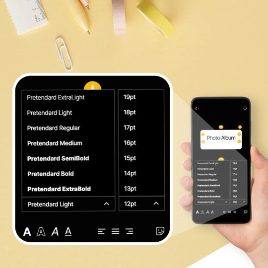 Vytvářejte a upravujte etikety přímo z chytrého telefonu. Importujte obrázky, přidejte text a upravte rozvržení. Vybírejte z široké nabídky fontů, samolepek a emotikonů pro etikety libovolného účelu.
