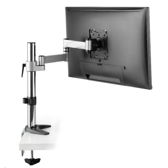 Technické údaje: nosnost 8kg plně nastavelný - 3D polohování monitoru na monitory s úhlopříčkou 13" až 27" podpora VESA 75x75 a 100x100 otáčení do stran +/- 180° náklon +/- 35° rotace obrazovky +/- 180° - funkce PIVOT nastavení vzdálenosti od nosníku 0mm až 396mm nastavení výšky max. 364mm uchycení na stolové desky o průměru 10mm až 85mm dva typy uchycení na stolové desky - svěrák na okraj stolu nebo skrz desku kamkoliv do prostoru krásný vzhled - chromový nosník, ramena ve stříbrném provedení materiál hliník vynikající kvalita, spolehlivost a dlouhá životnost instalační materiál součástí balení záruka 3 roky.