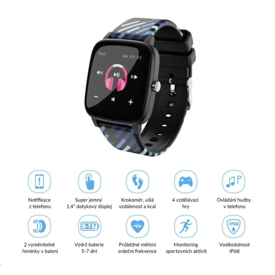 Sport a zábava na zápěstíChytré hodinky LAMAX BCool se stanou nejlepším parťákem vašeho potomka. Parádním designem ohromí všechny kámoše, postarají se o ovládání hudby a zajistí, že dítě bude vědět o všem důležitém i ve chvíli, kdy je lepší nechat telefon v tašce. Motivujte své ratolesti k pohybu a odměňte je za splněné výzvy – hodinky jim spočítají celodenní aktivitu a změří tep nebo spánek. S dvěma barevnými řemínky v balení a týdenní výdrží na baterku nešlápnete vedle.
