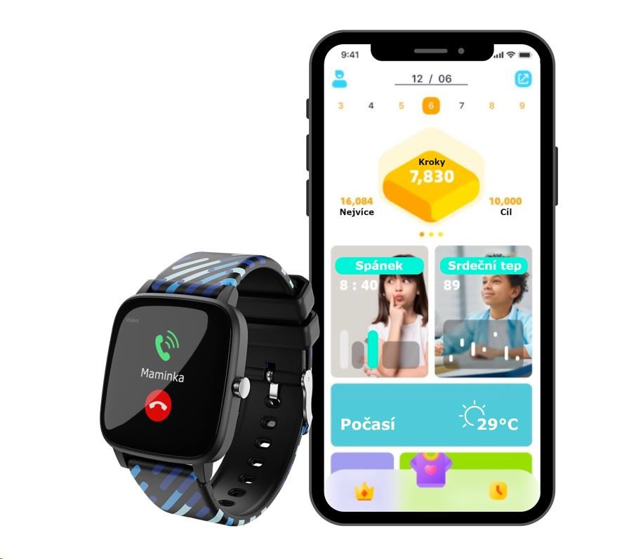 Hodinky upozorní dítě na příchozí hovor, SMSku, novinku z TikToku nebo dalších appek. Jednoduše zavibrují a na displeji dají vědět, o co se jedná. Rozumí si s Androidem i iOS. Telefon tak klidně může zůstat při vyučování v tašce.