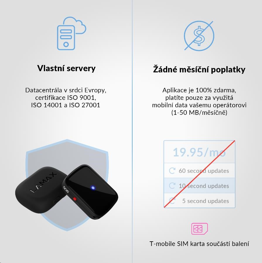 Ve spolupráci s T-Mobile Vám ke každému GPS Locatoru přibalíme SIM kartu, díky které můžete začít používat GPS Locator ihned po rozbalení a to zcela bez závazku a dalších nákladů.