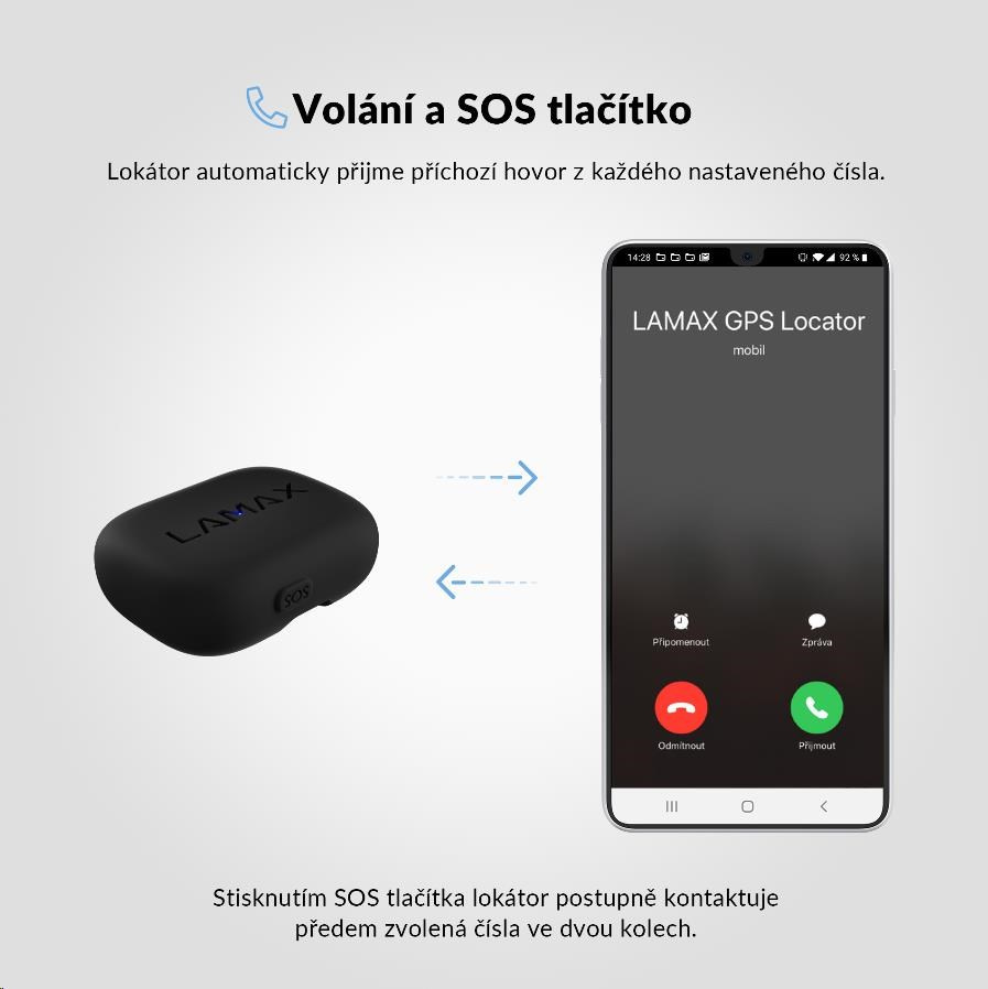V případě nouze může LAMAX GPS Locator vyslat signál, který ihned obdrží vybrané kontakty. Díky hlasovým službám, mikrofonu a reproduktoru je navíc může rovnou vytočit. Snadno tak svým nouzovým kontaktům popíšete situaci, když potřebujete pomoct.