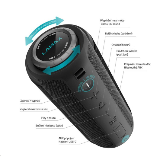 Na hlasitosti záležíVíc hudby, víc párty, víc pořádnýho soundu! LAMAX Sounder2 Max je nabušenější parťák Sounder2. Do většího těla se vešel mohutný 50W výkon, který překřičí konkurenci i sousedy. Díky masivní baterce ti budou beaty dunět v uších nonstop až 20 hodin. Vezmi kámoše a ukaž jim svůj hudební styl – doma nebo uprostřed džungle. S vysokou voděodolností a easy přenášením je to na tobě.