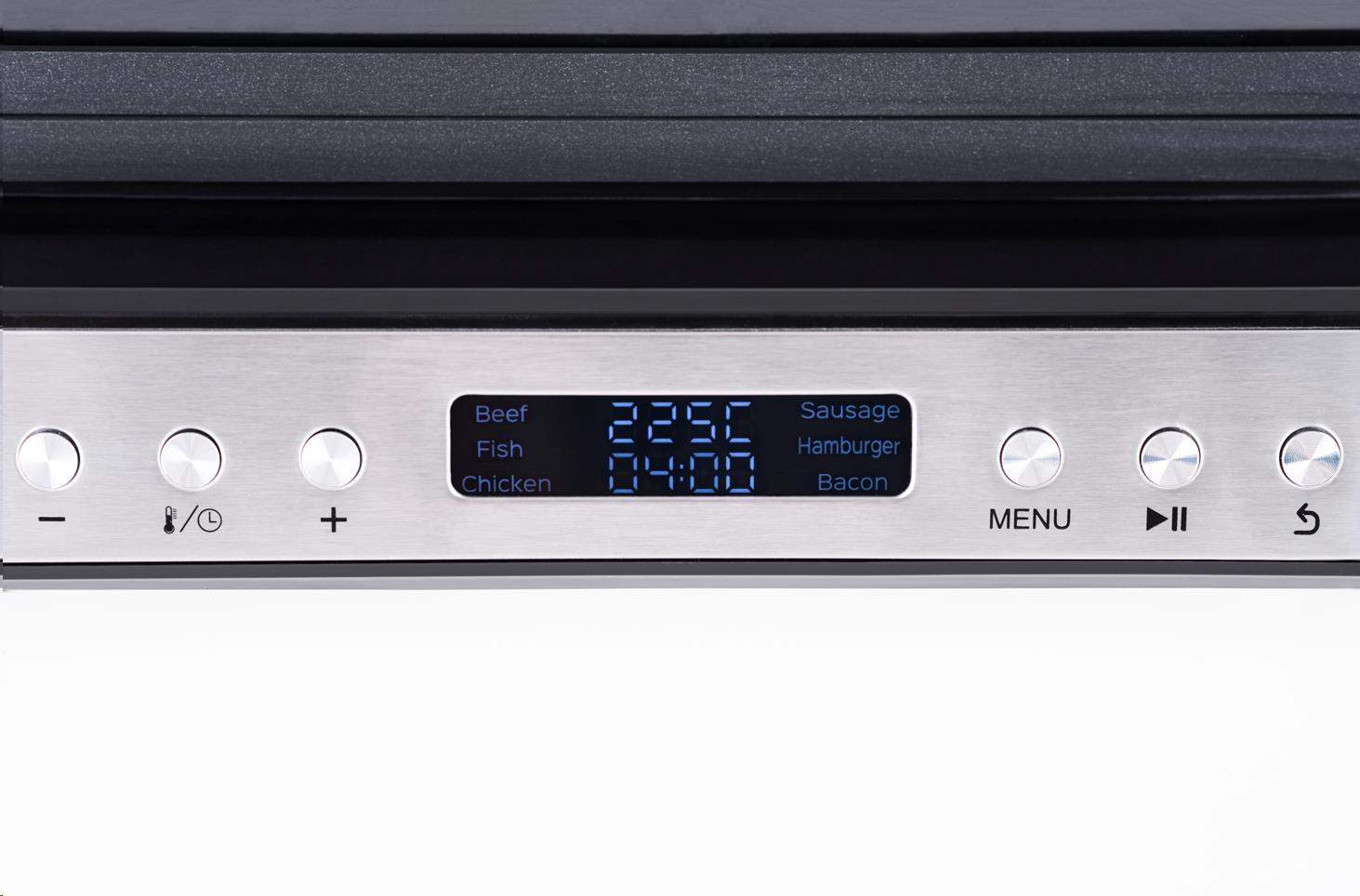 Obsluha grilu je velmi snadná i díky LED displeji, který v průběhu grilování signalizuje vše potřebné.