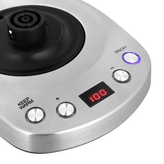 Skleněná rychlovarná konvice, 1,7 l, 2200 W, nastavitelná teplota 60 - 100°C po deseti stupních, funkce Keep Warm, velký LED displej, podsvícená tlačítka, pojistka proti přehřátí a vaření nasucho, vyjímatelný omyvatelný filtr, otočná základna, prostor pro kabel, One-Touch otvírání.... více