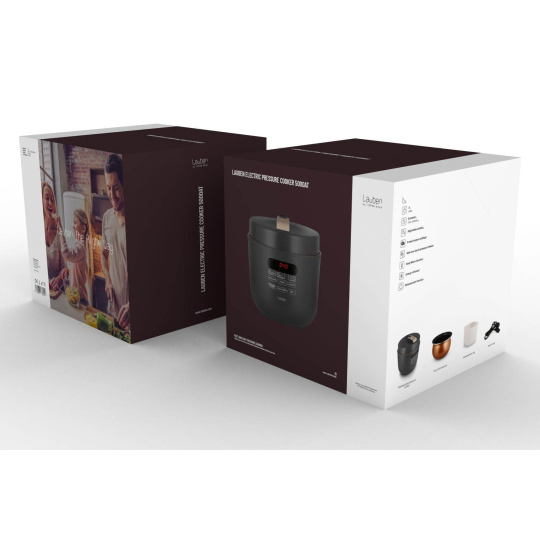 Víceúčelový a energeticky úsporný elektrický tlakový hrnec Lauben Electric Pressure Cooker 5000AT umí díky tlaku uvnitř připravit chutné pokrmy za rekordně krátkou dobu. Čas, který ušetříte, tak můžete věnovat sobě či rodině. Zároveň uspoříte i peníze, neboť spotřeba energie je při tomto způsobu vaření nižší. Kratší příprava prospívá také surovinám, které si uchovávají více živin. Stačí přitom jediné, vložit vše potřebné do hrnce, zavřít, zapnout a o vše ostatní se již přístroj postará sám.