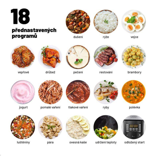 Díky 18 programům a manuálnímu nastavení času Lauben Multi Cooker s přehledem nahradí celý arzenál kuchyňských spotřebičů.