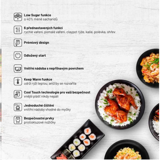 Lauben Low Sugar Rice Cooker vám bude v kuchyni krýt záda. Díky funkci časovače na vás může čekat hotové jídlo připravené k servírování hned po příchodu domů. Návštěva hlásí zpoždění a vy už jste chtěli chystat na stůl? Nevadí. S funkcí keep warm rýži snadno udržíte v teple i několik hodin, aniž by se rozvařila a ztratila dokonalou chuť nebo strukturu. S rýžovarem Lauben je příprava jídla rychlá a jednoduchá, ale i zdravá.