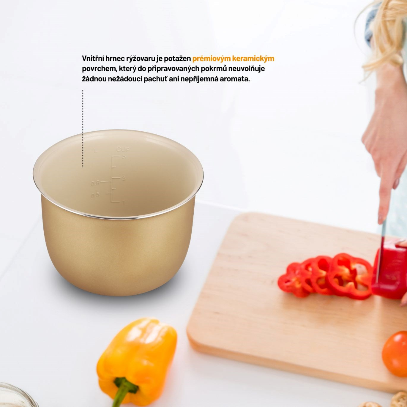 Dopřejte si více času na jiné aktivity a vaření přenechte multifunkčnímu rýžovaru, jehož 12 přednastavených programů si poradí s přípravou nejrůznějších pokrmů. Programy jako rýže, "claypot" rýže, hnědá rýže, polévka, kaše, dort, luštěniny, jogurt, kari, vaření v páře, dušení či ohřev jsou zárukou snadného a rychlého vaření. Prémiový keramický povrch vnitřního hrnce navíc neuvolňuje žádnou nežádoucí pachuť ani aroma, příprava pokrmů je tak zdravější. Pokud chcete svůj životní styl ještě vylepšit, využijte nerezového pařáčku pro dušení v páře.