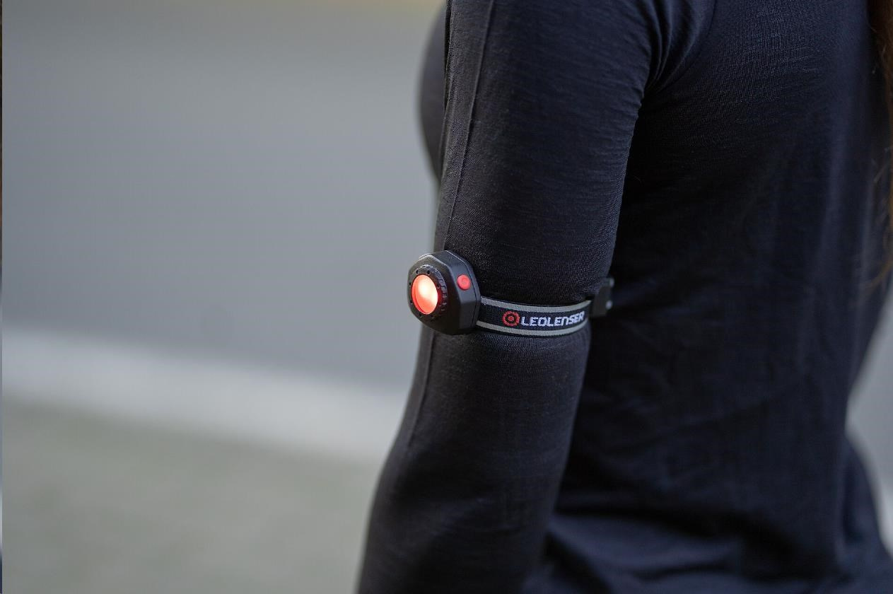 - Elastický reflexní pásek a kovová spona pro rychlé a flexibilní připevnění, např. na horní části paže nebo batohu