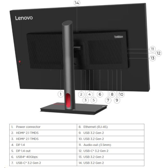 | Speciální funkce | Lenovo® ThinkColour (Lenovo Accessories and Display Manager) Support Lenovo ThinkColour supports Windows® 10 & 11, Mac OS, and Windows On Arm (functions vary across systems). Lenovo Accessories and Display Manager is formerly Lenovo Display Control Center. Factory Calibration: Avg. Delta E<1.5 Picture In Picture (PIP) / Picture By Picture (PBP) Support HDR10 Compliance DisplayHDR™ 1000 HLG KVM Switch Smart Sensor (Ambient Light Sensor, Human Detection Sensor) Smart Power The Smart Power function intelligently detects overall power consumption and dynamically manages the power delivery to each device |