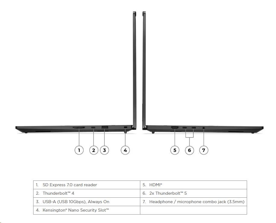 Typ zařízení:Notebook; Použití:Kancelářský; Podpora AI; Operační systém:Windows 11 Pro; Řada procesorů:Intel Core Ultra 7; Model grafické karty:NVIDIA RTX PRO 2000; Velikost paměti RAM (GB):32; Rozlišení displeje:1920x1200; Formát obrazovky:16:10; Typ disku:SSD; SSD Kapacita (GB):1000; Rozhraní:SD karta, USB 3.2 Gen 2, HDMI, 3.5mm Jack, Thunderbolt.