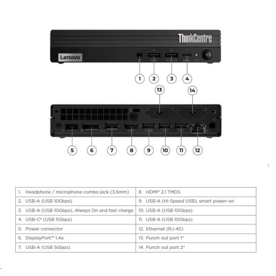 LENOVO PC ThinkCentre M70q Gen 5 Tiny - i3-14100T,8GB,256SSD,HDMI,DP,Int. Intel UHD 730,W11P,3Y Onsite