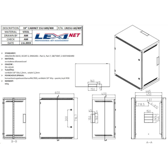 LEXI-Net 19" nástěnný rozvaděč 15U