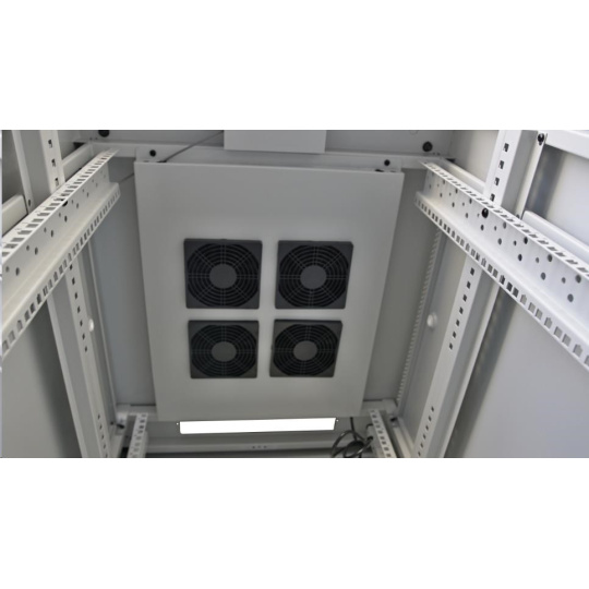 LEXI-Net 19" stojanový rozvaděč 37U 600x800 rozebiratelný, ventilační jednotka, termostat, kolečka, 600kg, sklo, šedý
