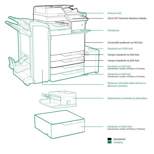 LEXMARK barevná tiskárna CX924dxe, A3, 65ppm,2048 MB, barevný LCD displej, DADF, USB 2.0, LAN.