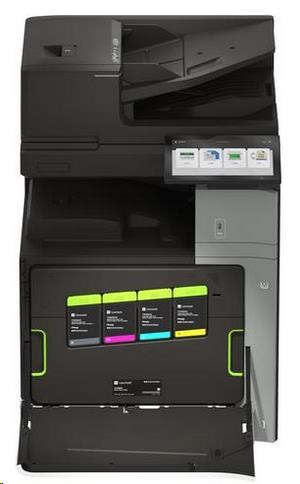 .Part Number 20L8300 Print Technology Color Laser Function Color Copying Color Faxing Color Printing Color Scanning Trusted Platform Module (TPM) The Trusted Platform Module (TPM) is not available in some countries. Workgroup Size Large Workgroup Touch Screen Display Yes Display Lexmark e-Task 10-inch (25 cm) class color touch screen Print Speed (Letter, Black) Up to 55 ppm4 Print Speed (Letter, Color) Up to 55 ppm4 Print Speed (Letter, Black) Duplex Up to 55 spm4 Print Speed (Letter, Color) Duplex Up to 55 spm4 Time to First Page (Black) As fast as 7.1 seconds Time to First Page (Color) As fast as 8.2 seconds Duplex (2-sided) Printing Integrated Duplex Print Resolution, Black 1200 x 1200 dpi 4800 Color Quality Print Resolution, Color 1200 x 1200 dpi 4800 Color Quality Copy Speed (Letter, Black) Up to 55 cpm4 Copy Speed (Letter, Color) Up to 55 cpm4 Copy Speed (Letter, Black) Duplex Up to 55 spm4 Copy Speed (Letter, Color) Duplex Up to 55 spm4 Time to First Copy (Black) As fast as 8.5 seconds Time to First Copy (Color) As fast as 9.5 seconds Reduce / Enlarge Range 25 - 400 % A4/Ltr Simplex Scan Speed (Black) Up to 120/120 sides per minute A4/Ltr Simplex Scan Speed (Color) Up to 120/120 sides per minute A4/Ltr Duplex Scan Speed (Black) Up to 240/240 sides per minute A4/Ltr Duplex Scan Speed (Color) Up to 240/240 sides per minute Scan Area, Maximum 11.69 x 17.0 inches ADF Scan DADF (single pass Duplex) Scanner Type Flatbed scanner with automatic document feeder Scan Resolution, Enhanced 600 x 600 dpi Scan Resolution, Optical 300 x 300 dpi Optical Scanning Resolution 300 X 300 dpi Scan File Formats (Send as) JPEG, JPG PDF Secure PDF TIFF Archival PDF (A-1a, A-1b) Searchable PDF TXT RTF DOCX Scan Destinations e-mail FTP USB Flash drive USB or Network connected computer Processor Speed Quad Core, 1.2 GHz Memory, Standard 4 GB Memory, Maximum 4 GB Hard Disk Intelligent Storage Drive included; Magnetic Hard Disk available Apple Operating Systems Supported Support is provided through AirPrint and AirScan only Citrix MetaFrame Microsoft Windows Server 2012 R2 Datacenter Edition running Citrix XenApp 7.5, 6, 7, 8, 9, 11, 12, 13, 14, 15, 16 Microsoft Windows Server 2012 Datacenter Edition running Citrix XenApp 7.5, 6, 7, 8, 9, 11, 12, 13, 14, 15, 16 Microsoft Windows Server 2012 Foundation running Citrix XenApp 6.0, 6.5 Microsoft Windows Server 2012 Essentials running Citrix XenApp 6.0, 6.5 Microsoft Windows Server 2012 Standard running Citrix XenApp 6.0, 6.5 Linux Operating Systems Supported Ubuntu 20.04 Debian 10 SUSE Linux Enterprise Server 12 SP5 OpenSUSE 15.2 Debian 11 Ubuntu 22.04 Fedora 36 Fedora 37 SUSE Linux Enterprise Server 15 SP4 OpenSUSE 15.4 Red Hat Linux 8.7 Red Hat Linux 9.1 Microsoft Windows Operating Systems Supported Windows Vista Windows Vista x64 Windows Server 2008 Windows Server 2008 x64 Windows Server 2008 running Terminal Services Windows Server 2008 x64 running Terminal Services Windows 7 Windows 7 x64 Windows Server 2008 R2 Windows Server 2008 R2 running Terminal Services Windows 8 Windows 8 x64 Windows Server 2012 Windows 8.1 Windows Server 2012 R2 Windows 10 Windows Server 2016 Windows Server 2019 Windows Server 2022 Windows 11 Novell Operating Systems Supported Novell NetWare 6.5 Open Enterprise Server Novell Open Enterprise Server 2 (SP3) on SuSE Linux Enterprise Server 10 SP4 (x86 and x64) 3 Novell Open Enterprise Server 11 (SP3) on SuSE Linux Enterprise Server 11 SP4 (x86 and x64) Novell Open Enterprise Server 11 (SP3) on SuSE Linux Enterprise Server 12 SP1 (x86 and x64) Novell Open Enterprise Server 15 (SP1) on SuSE Linux Enterprise Server 11 SP4 (x86 and x64) Other Operating Systems Supported Virtually any platform supporting TCP/IP Included Paper Handling 550-Sheet Tray 150-Sheet Multipurpose Feeder 500-Sheet Output Bin Optional Paper Handling 550-Sheet Tray Offset Stacker 500-Sheet Staple Offset Finisher 2 x 550-Sheet Tray 2000-Sheet Tandem Tray Cabinet 1,500-Sheet High-Capacity Tray Paper Transport Unit Folding Paper Transport Unit 1,250-Sheet Staple Hole Punch Finisher 2,250-Sheet Booklet Staple Hole Punch Finisher Paper Input Capacity, Standard Up to 700 pages 20 lb or 75 gsm bond Paper Input Capacity, Maximum Up to 4750 pages 20 lb or 75 gsm bond Paper Output Capacity, Standard Up to 500 pages 20 lb or 75 gsm bond Paper Output Capacity, Maximum Up to 2650 pages 20 lb or 75 gsm bond Paper Weight Range Supported - Standard Tray (lb.) 16 - 80 lb. Paper Weight Range Supported - Multipurpose Feeder (lb.) 16 - 80 lb. A3 / 11 x 17 Yes ADF 300-Sheet Automatic Document Feeder ADF Paper Input Capacity Up to 300 pages 20 lb or 75 gsm bond ADF Paper Output Capacity Up to 300 pages 20 lb or 75 gsm bond Finishing Option Yes Finishing Functions Offset stacking Stapling Hole punching Number of Paper Inputs, Standard 2 Number of Paper Inputs, Maximum 6 Media Types Supported Card Stock Envelopes Glossy Paper Labels Plain Paper Vinyl Labels Refer to the Paper & Specialty Media Guide Media Sizes Supported 10 Envelope 7 3/4 Envelope 9 Envelope A3 A4 A5 B5 Envelope C4 Envelope C5 Envelope DL Envelope Hagaki Card Executive Folio JIS-B4 JIS-B5 Ledger Legal Letter Statement Oficio A6 SRA3 Standard Ports USB 2.0 Specification Hi-Speed Certified (Type B) Gigabit Ethernet (10/100/1000) Front USB 2.0 Specification Hi-Speed Certified port (Type A) 802.11a/b/g/n/ac + Apple iBeacon Optional Local Ports Internal RS-232C serial Internal 1284-B Bidirectional Parallel Optional Network Ports MarkNet N8230 Fiber Ethernet Print Server Direct USB Yes Ethernet Network Yes Wireless Yes Wireless Network WPA2™ - Personal WPA™ and WPA2™ - Personal 802.1x Authentication: MD5, MSCHAPv2, LEAP, PEAP, TLS, TTLS Network Protocol Support TCP UDP IPSEC w/ IPv4 IPSEC w/ IPv6 ICMP IGMP IPv4 IPv6 Network Printing Methods Direct IP (Port 9100) Enhanced IP (Port 9400) FTP IPP 1.0, 1.1, 2.0 (Internet Printing Protocol) Microsoft Web Services WSD Pull Printing Thin Print LPR Network Management Protocols WINS AP