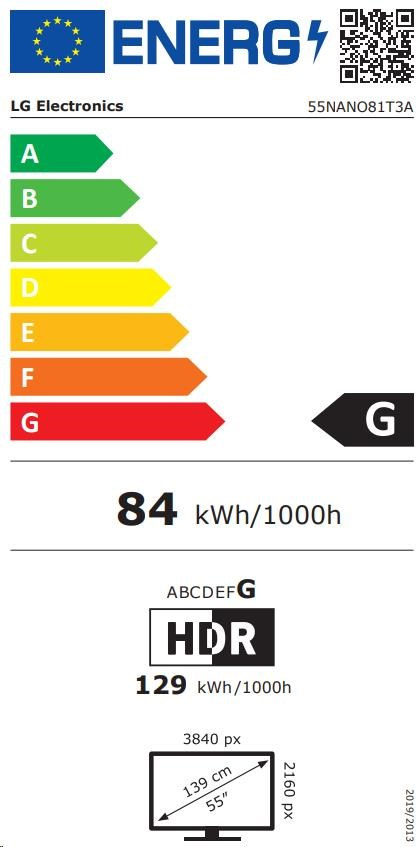 LG 55NANO81T3A 55" TV, 4K Ultra HD, NanoCell, Direct LED, webOS, WiFi, Bluetooth, HDMI, HDR