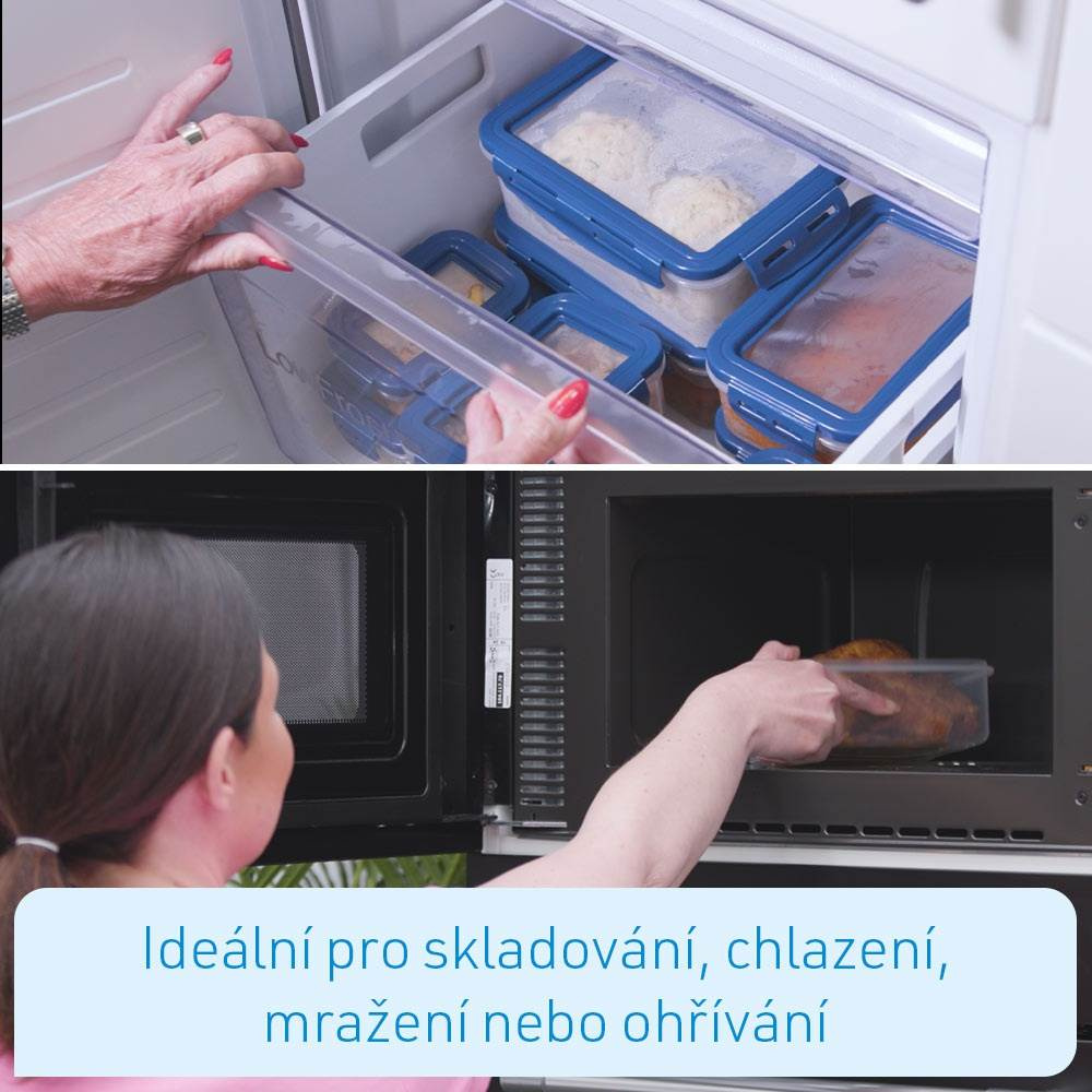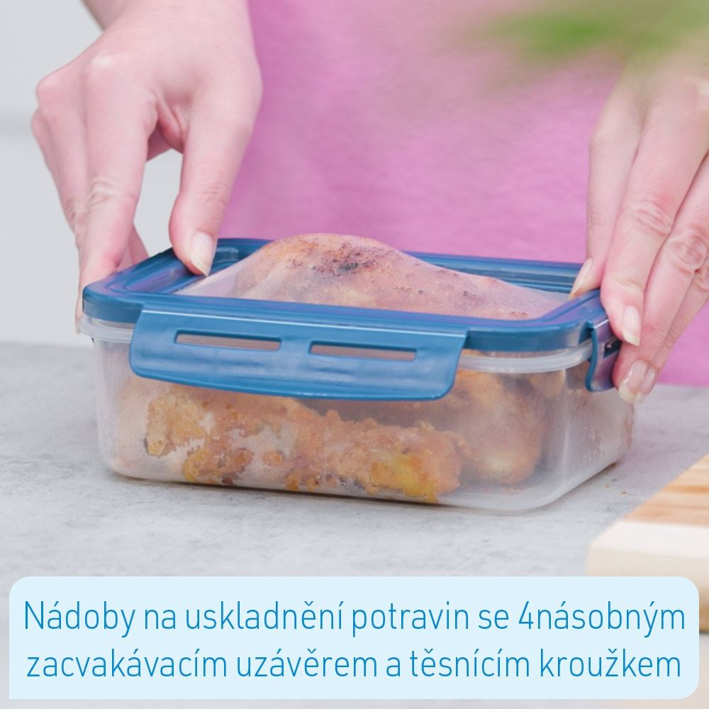 - Nádoby na uchovávání potravin se 4násobným zacvakávacím uzávěrem a těsnícím kroužkem