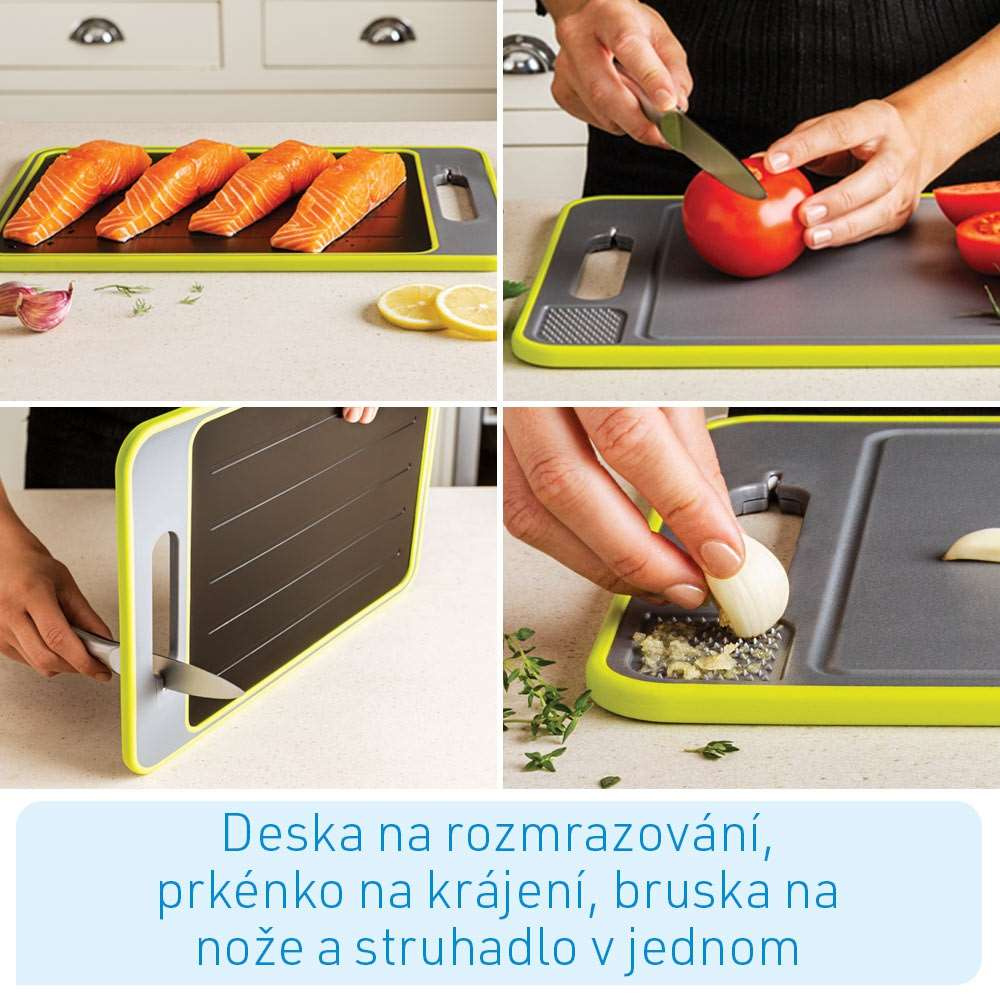 - Deska na rozmrazování, prkénko na krájení, bruska na nože a struhadlo v jednom
