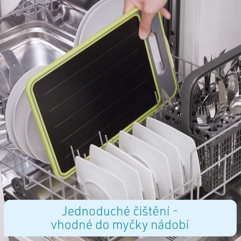 - Protiskluzový gumový okraj pro bezpečné udržení potravin na pracovní desce J