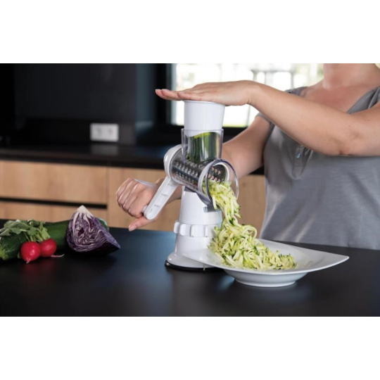 | Funkce a vlastnosti | Části vhodné do myčky, Protiskluzové nožičky, Struhadlo a kráječ v jednom |