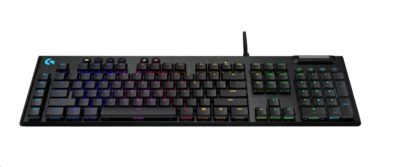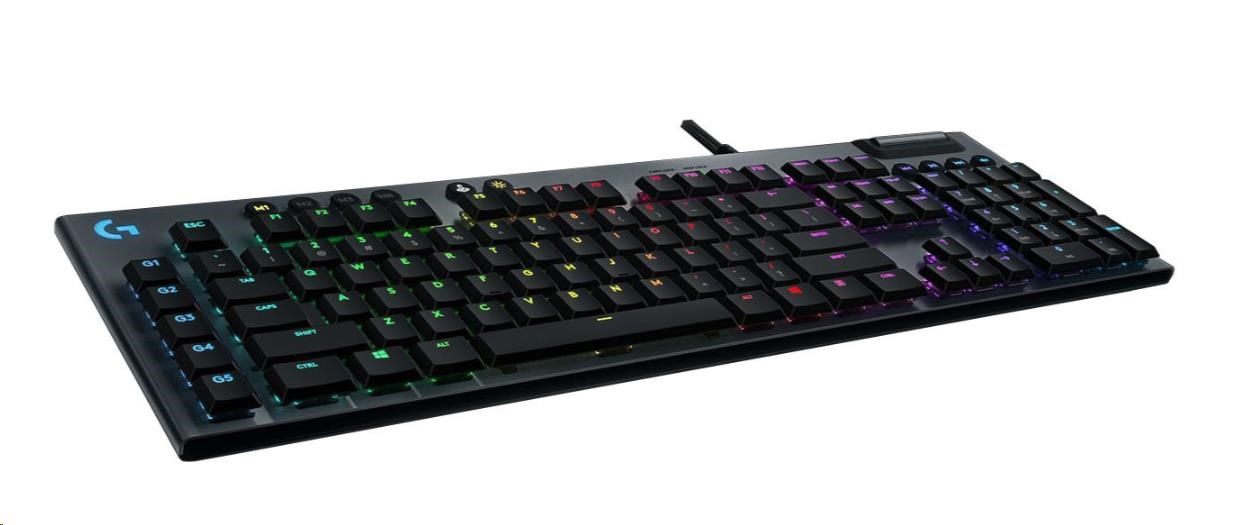 | Další funkce | Podsvícení LIGHTSYNC RGB, pro jednotlivé klávesy 5 speciálních kláves G-key Speciální ovládací prvky médií a kolečko regulace hlasitosti bez hran |