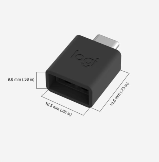 | Zone Wireless USB-C adapter: 25.1 x 16.5 x 5.3 mm * The adapter is only compatible with Logitech Zone Wireless Bluetooth Receiver. |